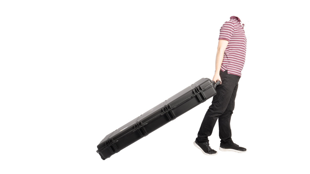The Peli iM3300 Storm case is a long, protective case with two soft-grip handles and in-line wheels for transporting.